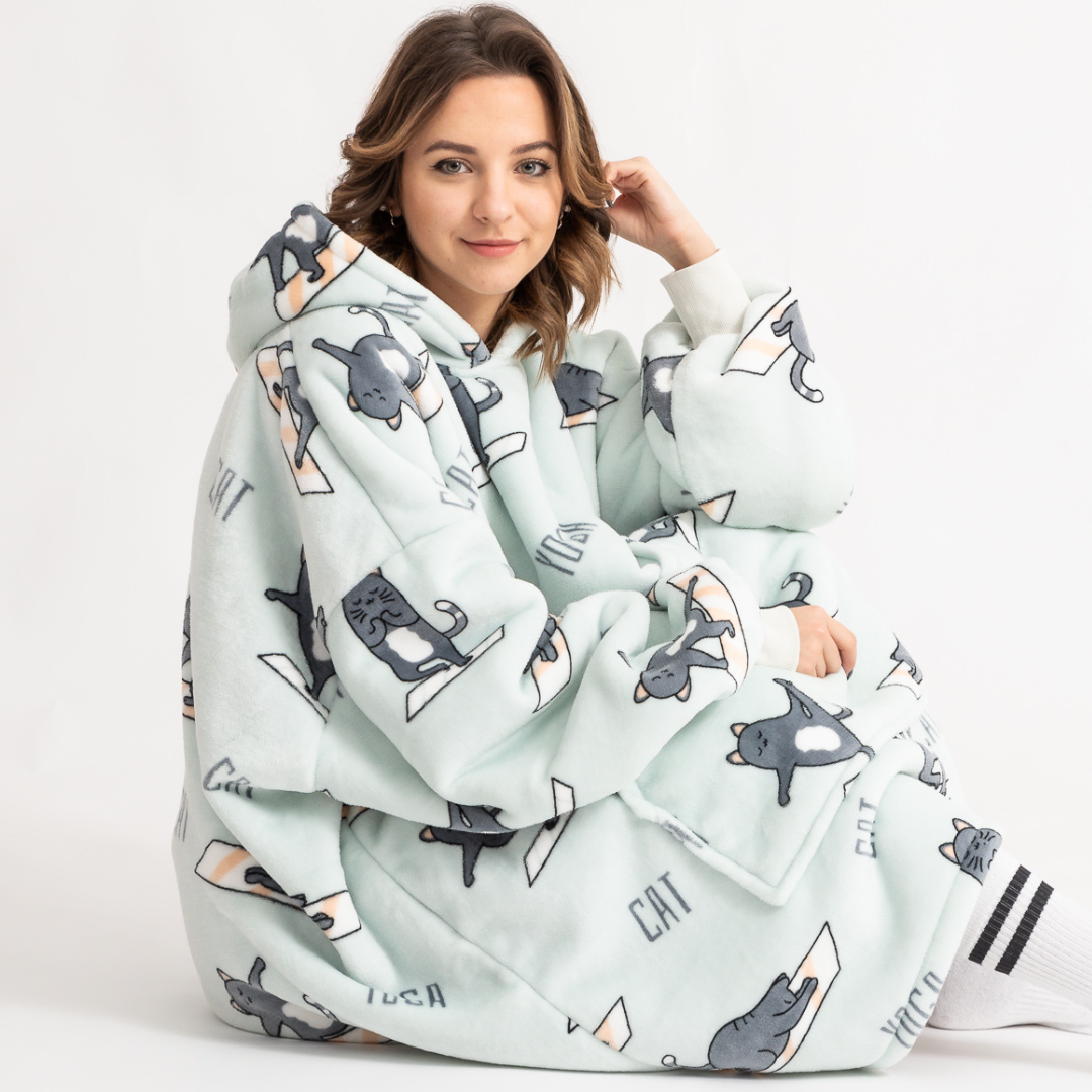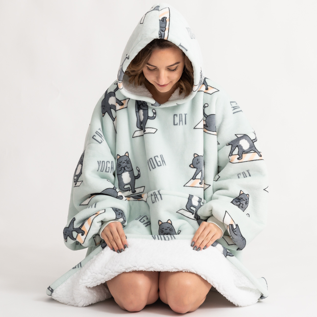 Puló™ je mikina a deka v jednom – stačí si ju obliecť a môžete si užívať pohodlie naplno. Mäkký, hrubý materiál vás zahreje počas oddychu na gauči, sledovania filmu alebo pokojného rána. Žiadne obmedzenia, len maximálne pohodlie pre každý domáci deň.