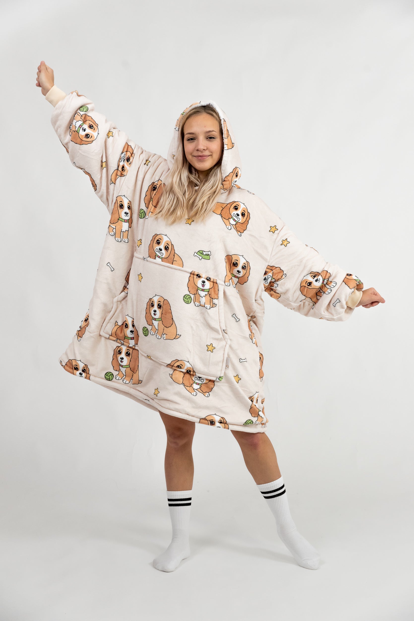 Puló™ je mikina a deka v jednom – stačí si ju obliecť a môžete si užívať pohodlie naplno. Mäkký, hrubý materiál vás zahreje počas oddychu na gauči, sledovania filmu alebo pokojného rána. Žiadne obmedzenia, len maximálne pohodlie pre každý domáci deň.